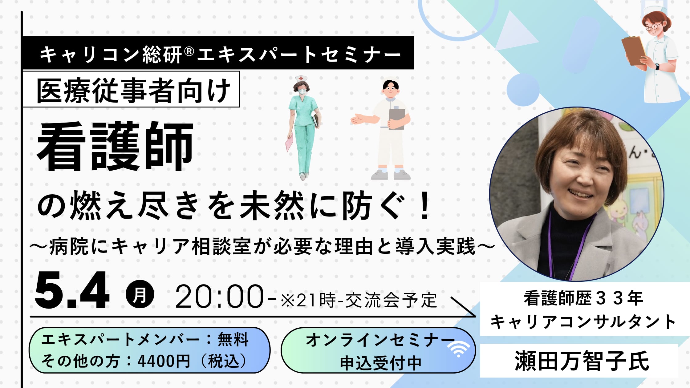 看護師の燃え尽きを未然に防ぐ!~病院にキャリア相談室が必要な理由と導入までの道のりについて~【キャリコン総研®26年5月エキスパートメンバーシップオンラインセミナー】